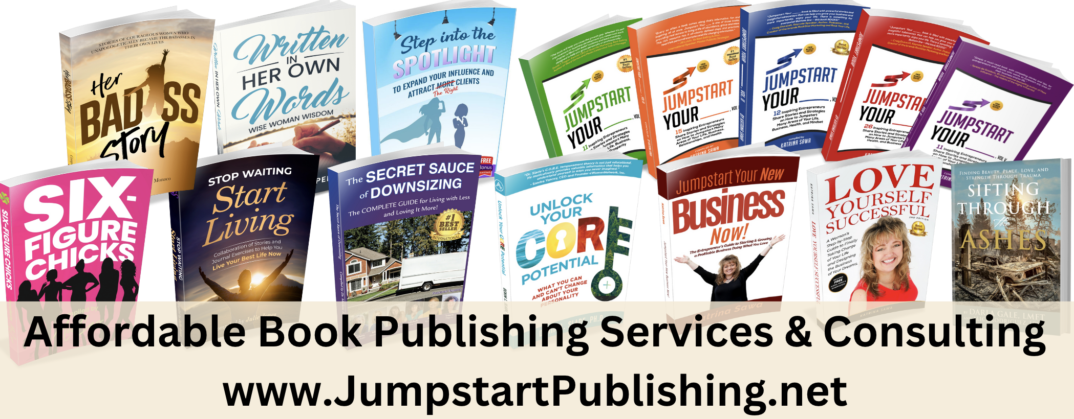In addition, I help entrepreneurs write and publish your books, host compilation books, learn more about any of the publishing process. At Jumpstart Publishing we help you get your books out faster so you can use them sooner as marketing tools to grow your business.
